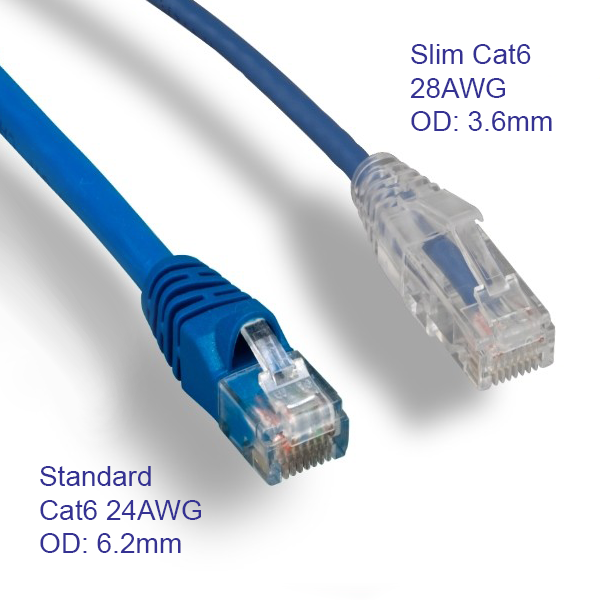 • 60% thinner than standard 24 AWG Cat6A cables.