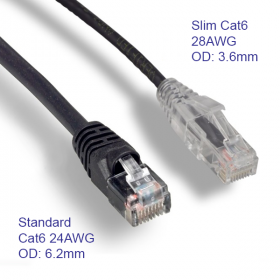 • 60% thinner than standard 24 AWG Cat6 cables.